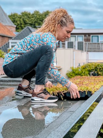 Het creëren van een groen dak op onze overkapping bleek ook nog eens heel makkelijk te zijn. Het kant en klaar groene dak systeem van MobiRoof ECO bestaat uit groene cassettes. Deze cassettes zijn gevuld met substraat en 6 tot 8 verschillende soorten sedum. Je legt ze netjes naast elkaar op je platte dak of daken met een hellingshoek tot 10 graden en klaar is je groene dak! Super eenvoudig. Het is leuk om zelf te kunnen doen en zo stap voor stap je dak te zien veranderen.