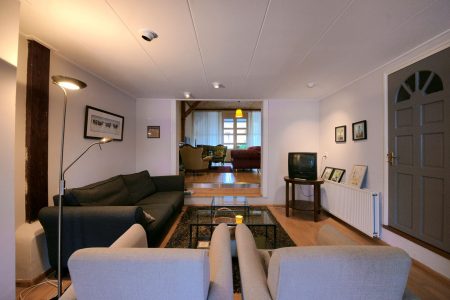 Er is ontzettend veel gebeurd binnen een korte tijd. We hebben alles zelf verbouwd, alleen het stucwerk op de wanden hebben we laten doen. Het houten balken plafond wat onder het gipsplafond zat wilden we behouden, maar van de zeven balken bleken er maar drie goed te zijn. Dus die oude balken moesten er uit en vernieuwd worden. Tussen de houten balken zijn allemaal nieuwe houten planken gekomen en we hebben het hele plafond wit geverfd. Alle wanden zijn opnieuw opgebouwd, gestuct en wit gesausd. We hebben er een nieuwe vloer in gelegd en ook wit geverfd.