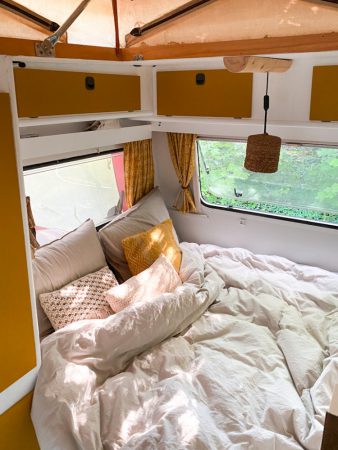 Alle spullen die we in de caravan hebben gebruikt zoals de potten, pannen, bestek en andere benodigdheden kunnen we zo weer gebruiken als we met het busje gaan reizen. Leuke campingstoelen en een toffe tent ik zie ons al helemaal gezellig voor de bus zitten! Genieten van alle zonnestralen en een muziekje bij het kampvuur.